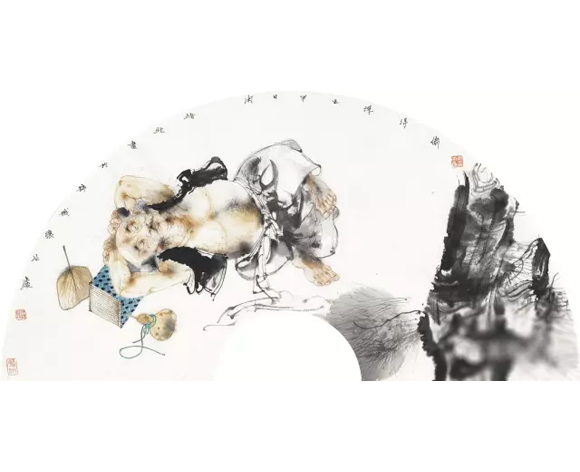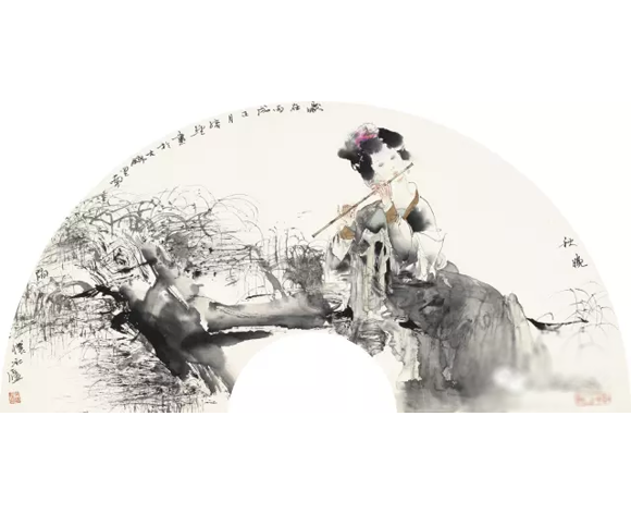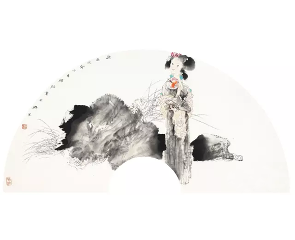 观绪经先生之画,无论是仕女扇面,还是红楼局部,我们都可以清晰的看见他对于线条的细笔勾勒,工写兼善,人物造型准确生动,布局构图别具匠心,随类赋彩足有个性,将传统的中国画人物造型赋予了现代的意义,更使得凸显了的色彩具备了丰富的饱和度和明晰的分辨力。一颦一笑,一走一动,吴带当风,长衣善舞,莫不为之侧头观望。