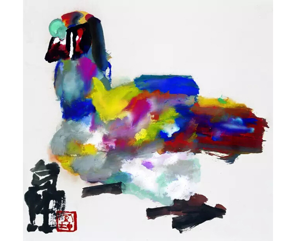 观寅坤先生之画,无不叹其气势的高大,无不让人想起宾虹先生所言绘画,写意为上的箴言。细看花鸟之作,其布局之讲究,其色彩之豪放,其草情篆意之书写性,其题款印章之位置选择,虽是小处着眼,却是气象万千。那些游动的鱼儿,那些飘香的粽子,那些日常世界平凡可见的事物,一旦美丽的呈现,无不让人感叹生活的美好。