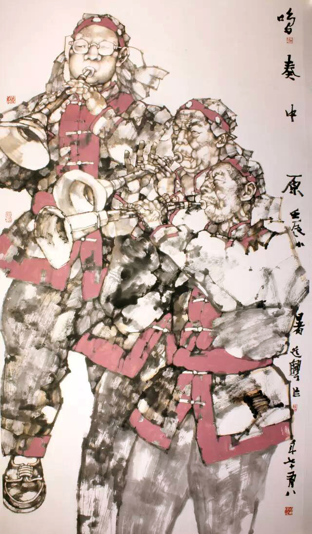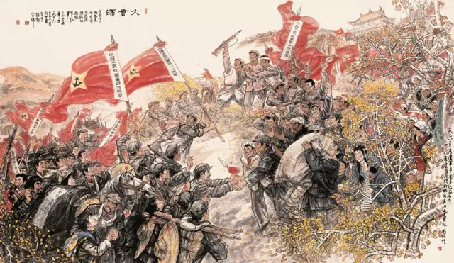 这四位德高望众的艺术大家以饱满的激情向伟大祖国、伟大军队献上主题性创作作品60余幅。浓墨重彩描绘英雄人物,磅礴正气再现恢弘场景。每一幅作品都定格在革命历史重大事件或英雄群体,铮铮铁骨,赤胆忠心,壮我军威,激励我们不忘初心,继续前行。祝愿百万雄师钢铁长城昂首阔步永远向前,向前,向前!