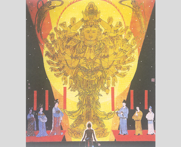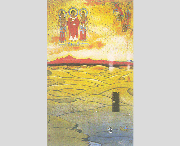 1936年毕后不久,即逢抗日战争爆发,先生投笔从戎参加抗日,追随著名抗日爱国将领张自忠将军转战于豫鄂两省。张将军殉国后先生与女友辗转千里来到重庆,后到南充定居,重操画笔,开始鬻画谋生艰苦岁月。此刻敦煌壁画发现的消息传来,又激起先生热情向往,经两年努力筹措旅费,跋山涉水历经辛苦经兰州来到敦煌。半个世纪前的敦煌,地处戈壁深处,谈不到半点现代文明与方便,千年石室荒凉破败,物质条件困难已极。先生一头扎进洞室,临摹和研究向往多年而无从得见的隋唐时期光辉灿烂的艺术。在千载蒙尘的壁画中仿佛见到梦寐多年的顾恺之、陆探微、张僧繇、阎立本、吴道子、张萱、周昉的画迹遗风。盛唐风格的丰满富丽、博大雄阔,予他极强烈的感受和影响。