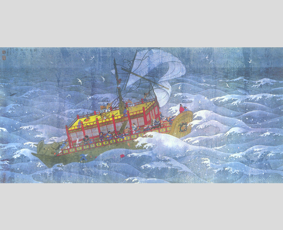 十年动乱结束,迎来文艺的春天,潘先生的创作热情一发而不可止,以工笔的工程而论他应是“高产”作者。年过花甲的老画家以惊人的勤奋与创造力,画出了一系列新作,试看《乐府调笑词图咏》《李白妇女诗集绘》(60幅)、《屈原九歌图》(组画12幅)、《自居易“长恨歌”画传》《花与女》(组画50余幅)、《四时山图》(4幅),访日归来创作的日本生活作品《友谊之花》《日本新嫁娘》《北州——日本舞》《如花似玉》《幽谷百合》等,以及赋予历史与哲理思索的《敦煌组画》多幅。工笔画制作精心费时,每件作品都凝结着深刻的主题、巧妙的结构、隽永的意蕴、动人的形象、贴切的比喻、浪漫的想象,而且技法精深,造型严谨,耐人寻味。如此庞大的数字和高度的艺术质量在短短的时期里产生出来,令人难以置信。就在我追随先生的十年间,先生社会活动和应酬十分繁忙,出国和外地学术活动很多,每天四方慕名来访者都得到亲切的接待满意而去,耗去大量时光,十年内还写出大量文章诗词,真不知他是在什么时间画出的这些作品。