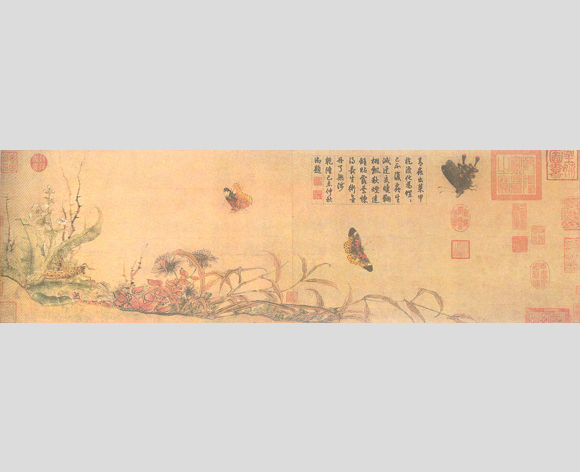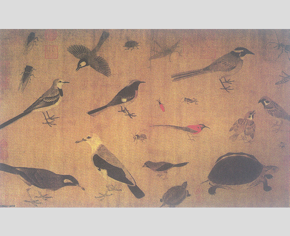 这就又回到《诗经》开启的比兴之义了。其实,这种种花乌意象,无不是人主精神境界的象征。南宋罗大经著《鹤林玉露》载曾云巢无疑工画草虫,人间其所传,则称先观察笼中之虫,“又恐其神之不完也,复就草地之间观之,于是始得其天。方其落笔之际,不知我之为草虫耶?草虫之为我耶?此与造化生物之机缄,盖无以异,岂有可传之法哉!”“天”者,自然之至;“机缄”者,天地运化之关钮。中国人的草虫画不是现实主义,不是反映,是天人合一中对造化“机缄”难以言说的心灵体验,是自我精神的传达方式,是传客观之神,更是传画家主观之情之意。赵昌条这样描述赵昌:“昌之作,则不特取其形似,直与花传神者也”。此或许也该是不知昌之为花,花之为昌耶?这当然就是其“作折枝极有生意”之内涵,也是苏轼“赵昌花传神”之由来。