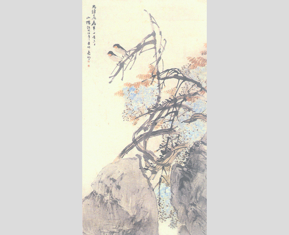 当然,在谈中国古典花鸟画之精神时,还不能忽略古代花鸟画史中呈现出的托笔墨以传情达意的阶段。大约在十六世纪中叶,即明代画坛之吴派谢幕而松江派登台的前后,画坛出现对笔墨境界的追求。明末唐志契说,“苏州画论理,松江画论笔。”这话说的虽是山水画,其实标志着画坛笔墨时代的来临。笔墨至上作为一个影响及于今天的强大的画坛思潮,在当时同样覆盖了整个花鸟画坛。以陈淳、徐渭为代表的水墨大写意登场。接下来的八大山人,金农、李鱓、李方膺,在花鸟笔墨上都有贡献。尤其是以吴昌硕为首之海派各家,引碑学入画,更把花鸟画的笔墨上升到超越花鸟自然形色的境界,一种从笔墨中呈现个人精神、气质、个性、学养的境界。纯从田野山川中走来的朴质自然的齐白石,也是从吴昌硕笔墨入手“衰年变法”而走向成功的。笔墨至上的黄宾虹推崇“道咸中兴”而贬扬州诸家,正是从碑学入画的新风尚角度,贬抑尚在比兴寓意传统中踟蹰的郑板桥们的。碑学入画也的确是道咸时期蔚为风气的。其实应该指出,即使在笔墨至上思潮出现之后,比兴寓意的传统仍未中止。扬州诸家是如此,今天的花鸟画家也仍然如此。其实,就是赵之谦、吴昌硕们的花鸟画又何尝拒绝过比兴象征题诗入画的做法呢?尽管笔墨至上的确是当时画坛的大潮。这样,我们在中国古典花鸟画精神上当然还得再加上一条: