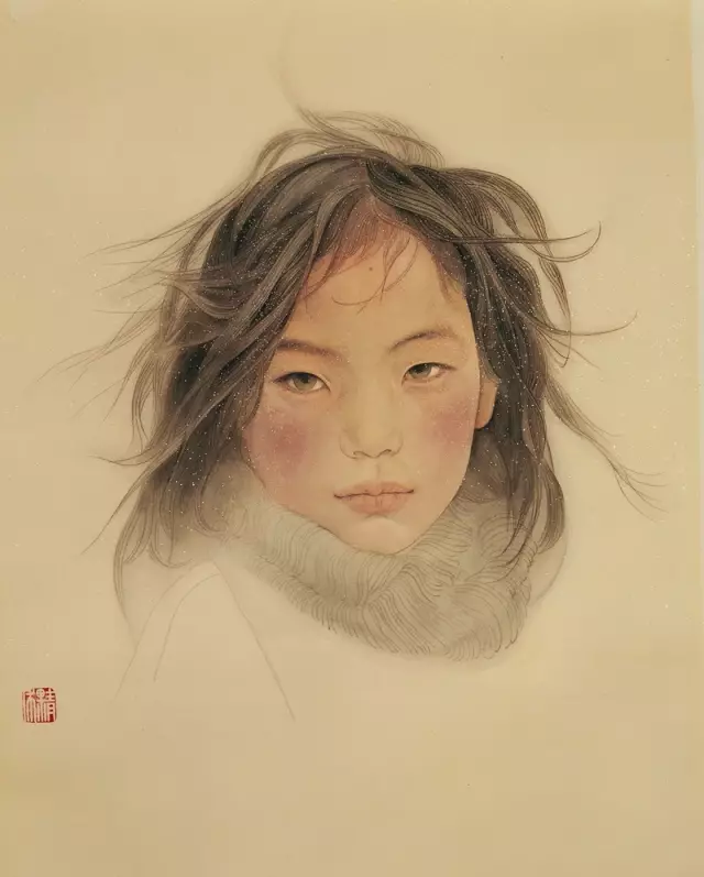 人物画的创作核心是对人物形象的塑造,真实感人的人物形象是人物画家最难把握的。《西风烈》画面中的两个女红军的真实性和精神状态如何表现着实令我煞费心思。翻阅各种资料,到生活中去找形象,有一次在大马路上看见一个年轻姑娘,我跟随她观察很久,并主动上前搭讪,掏工作证,约姑娘到画院帮忙,却仍然达不到我心目中的要求。正在一愁未展之际,一位十六七岁女孩,闯进我的画室看我画画,黑黑的皮肤、浓眼大眉、又不失内秀。很接近我的画面形象,我立即画了幅头像写生,以后又多次约女孩到画室观察、画速写动态,最终使创作得以顺利进行。