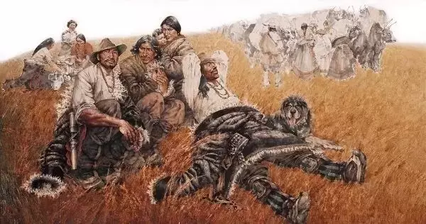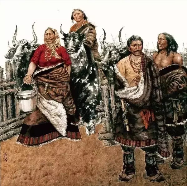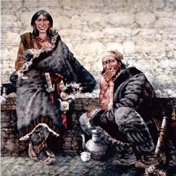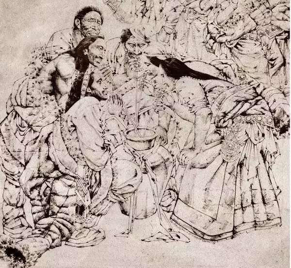如果以逸笔草草,不求形似的潇洒挥就,墨色的浓浓淡淡幻化出兮惚兮的梦态,饱书面外之情,题长款,空白处多盖几方闲章,那又是怎样一幅雪域文化的杰作。但是,将作品给草原的牧民看,他们会告诉画家,你画的不是我们,草原的灵魂无法在你的杰作中附体。