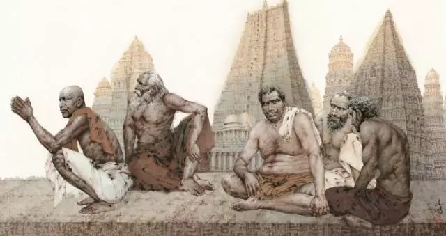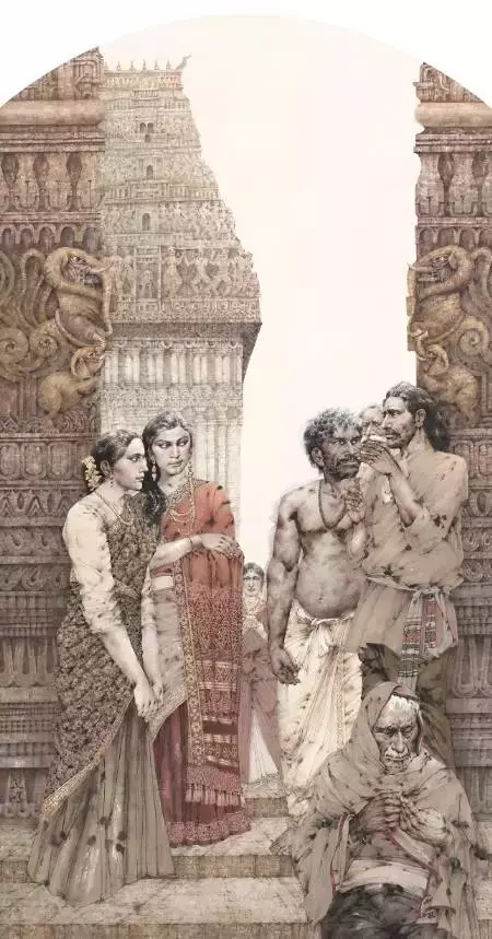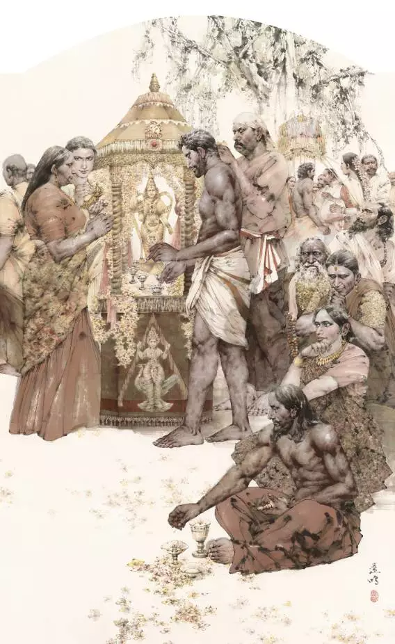 纳希克神庙三祭司 150cmx300cm 2016年